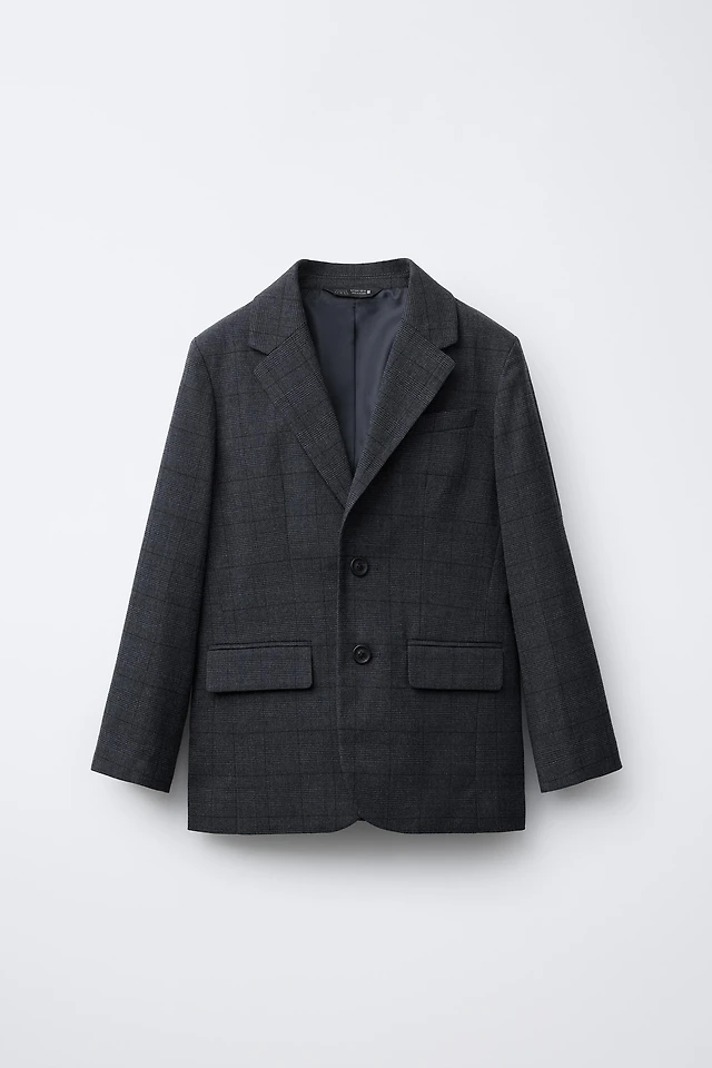 TEXTURED PLAID JACKET WITH VELVET BOWS