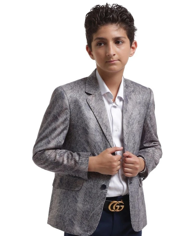 Elie Balleh Boys Silver Slim Fit Printed Velvet Blazer
