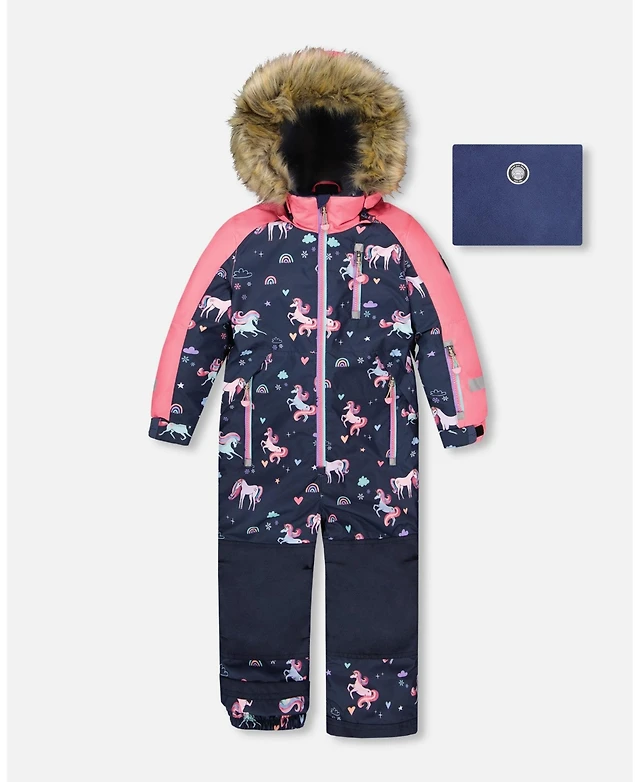 Deux par Girl One-Piece Play Snowsuit Navy Unicorn Print