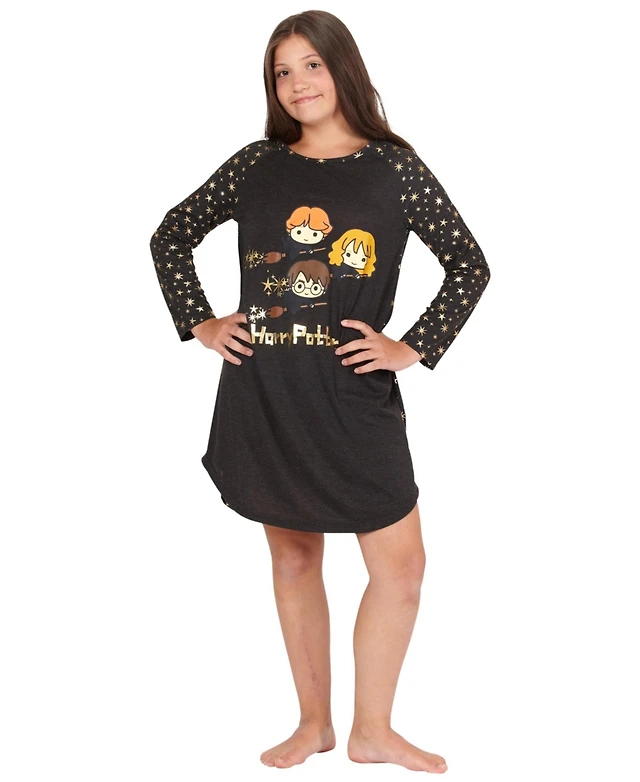 Harry Potter Big Girls Nightgown Long-Sleeve Raglan Varsity Pajama Sleepwear Loungewear