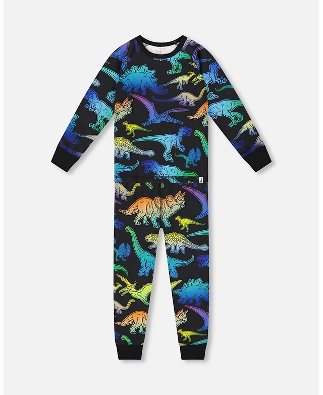 Deux par Boy Two-Piece Cotton Pajama Set Black Dinosaur Print
