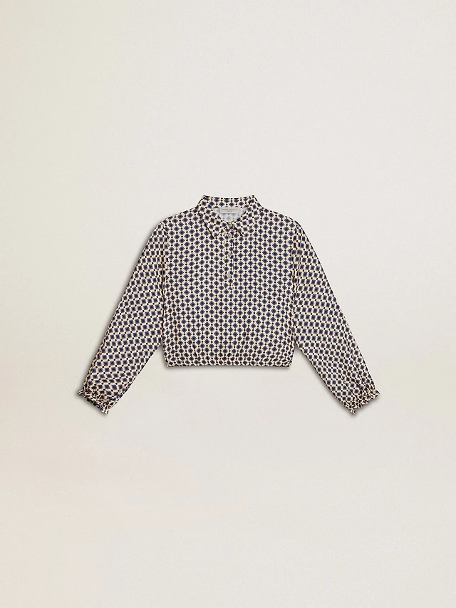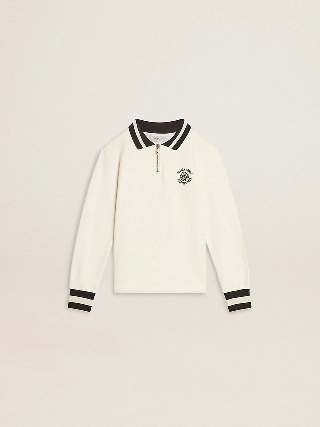 Kids white cotton polo sweatshirt with embroidery on the chest and print back