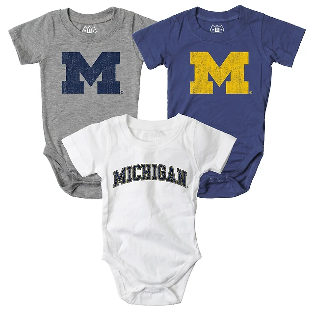 Infant Wes & Willy Michigan Wolverines Three-Pack Bodysuit Set