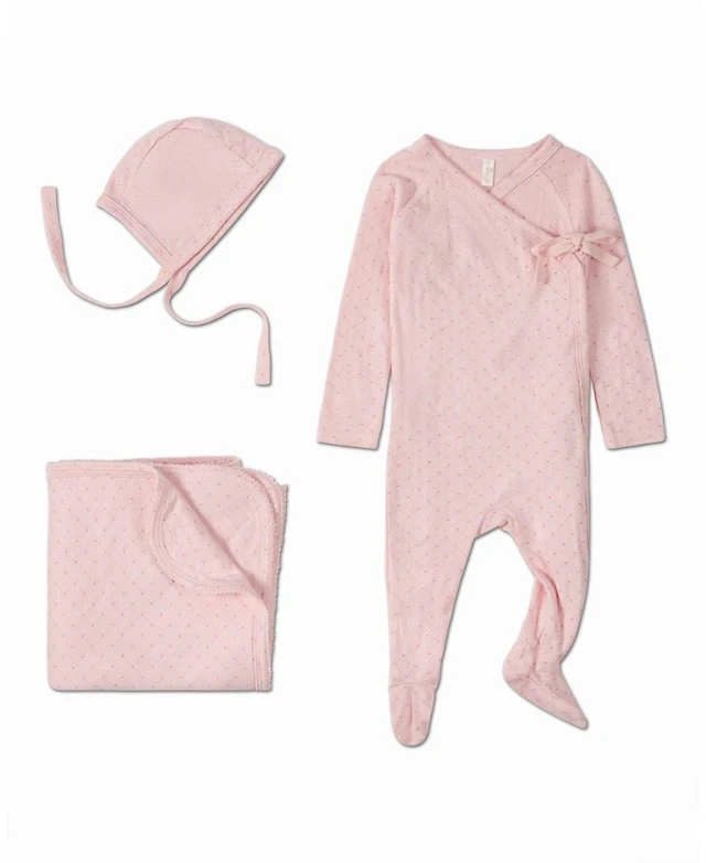 MeMoi Baby Girls 3 Piece "Little Hearts" Pointelle Footie Set
