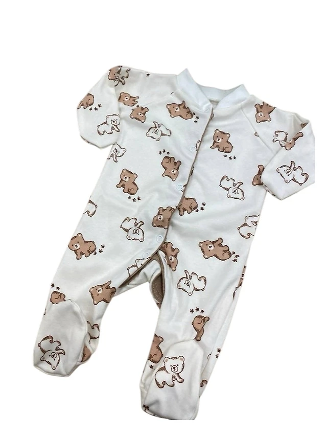 Baby Ribbed Long Sleeve Bodysuit – Beige with Bear Print 🐻