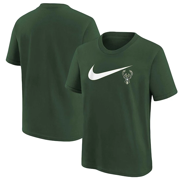 Youth Mitchell & Ness Hunter Green Milwaukee Bucks Hardwood Classics Retro Logo T-Shirt