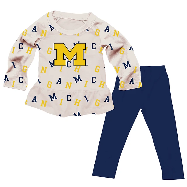 Girls Toddler Wes & Willy Oatmeal Michigan Wolverines Ruffle Raglan Long Sleeve T-Shirt & Leggings Set