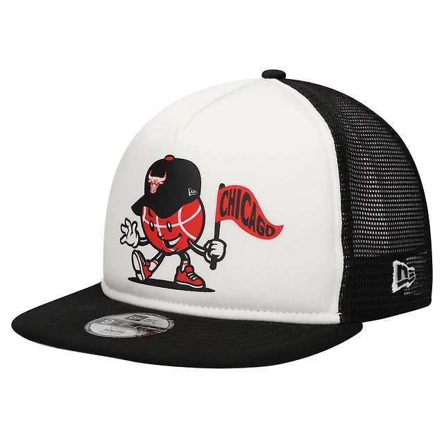 Youth New Era White/Black Chicago Bulls Court Sport Mascot 9FIFTY Snapback Hat
