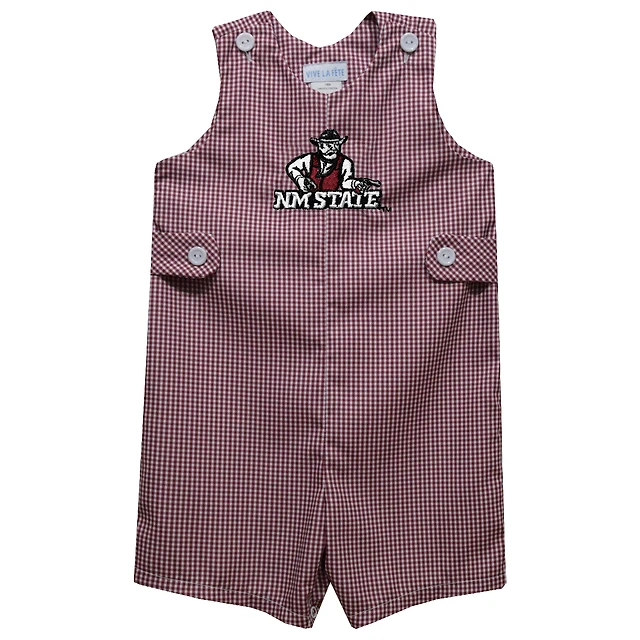 Infant Vive La Fete Crimson New Mexico State Aggies Gingham Jon Jon Romper