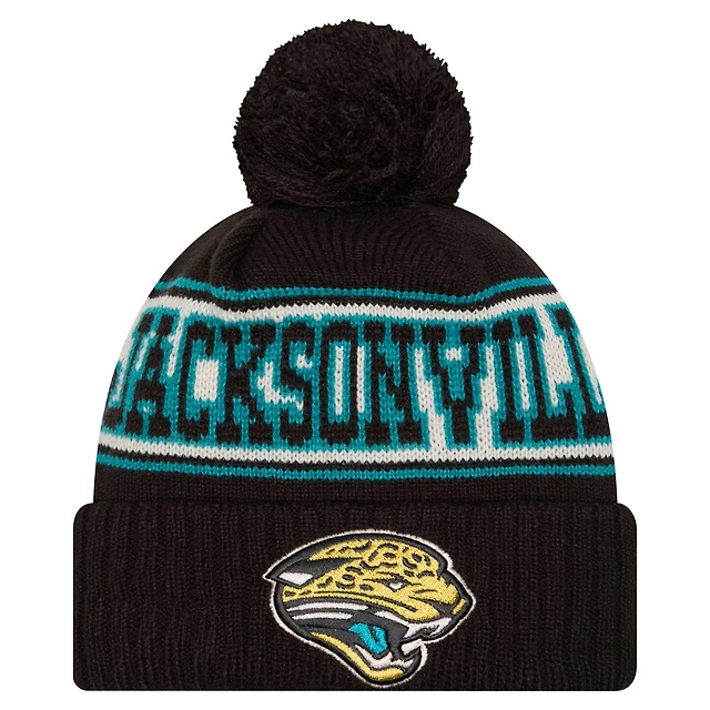 Youth New Era Black Jacksonville Jaguars Retro Cuffed Knit Hat with Pom