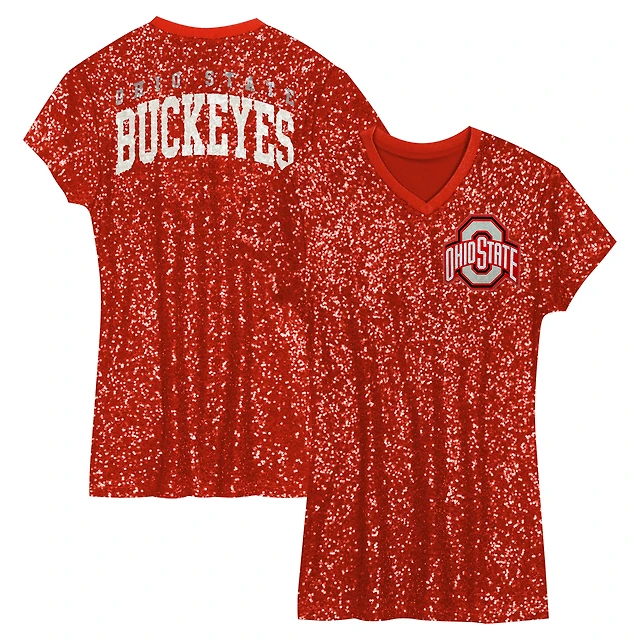 Girls Youth Scarlet Ohio State Buckeyes Sequin V-Neck Dress