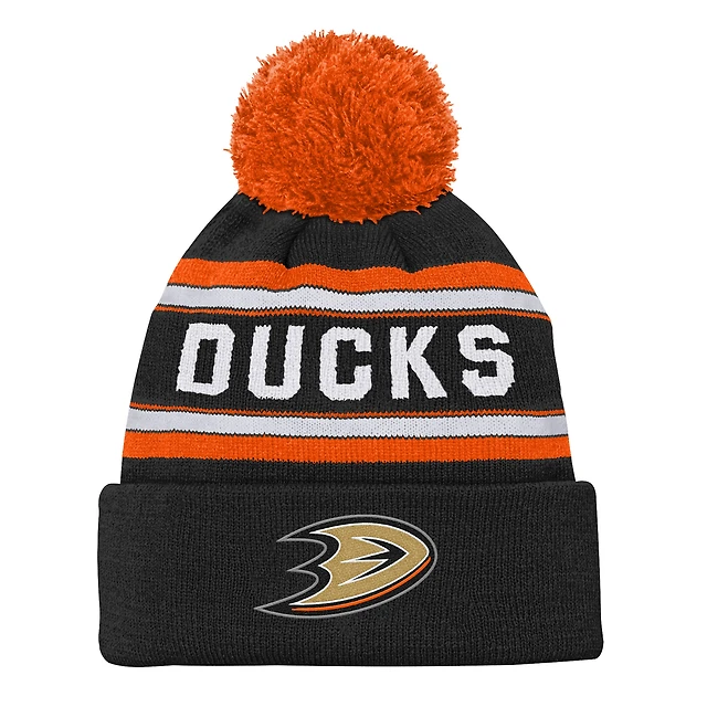 Youth Outerstuff Black Anaheim Ducks Jacquard Cuffed Knit Hat with Pom