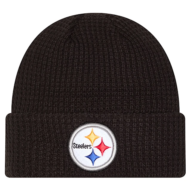 Youth New Era Black Pittsburgh Steelers Waffle Cuffed Knit Hat