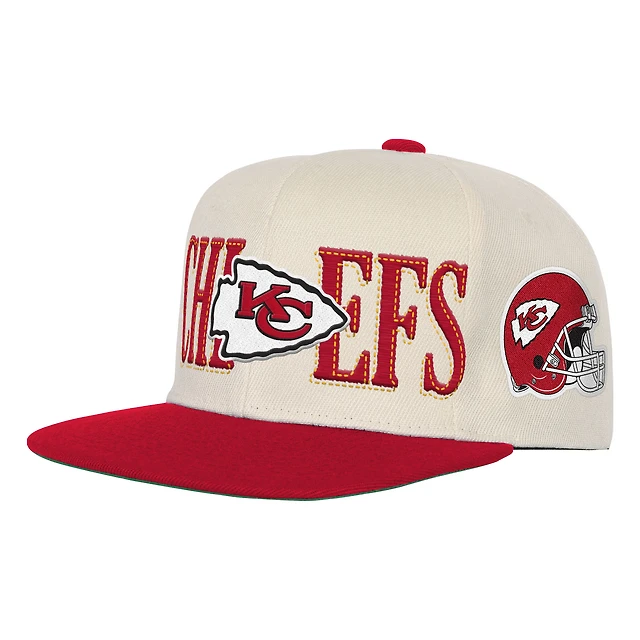 Youth Mitchell & Ness Cream/Red Kansas City Chiefs Across the Board Vintage Snapback Hat