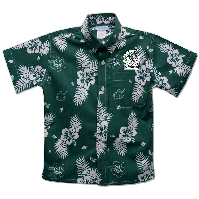 Youth Vive La Fete Green Mexico National Team Hawaiian Print Button-Down Shirt