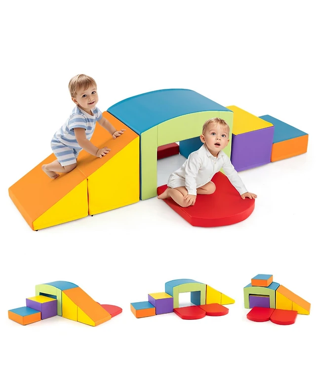 Slickblue Kids 6 Pieces Foam Climbing Blocks Soft Play Climbing with Tunnel