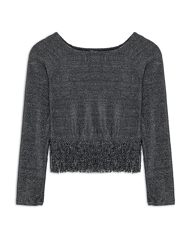 Surell Girls' Knit Sequin Beanie Hat With Faux Fur Pom - Big Kid