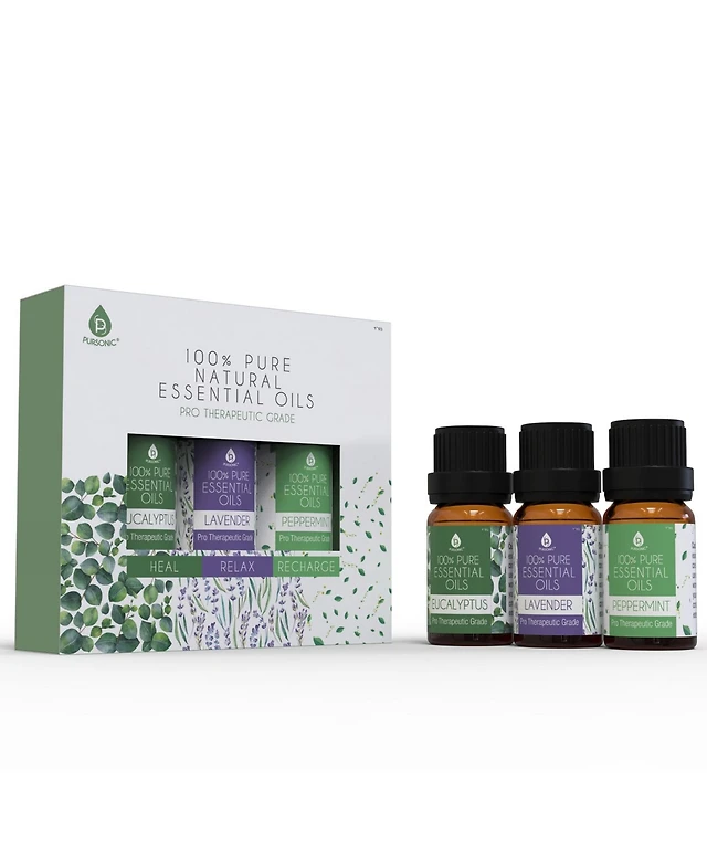 Pursonic 4-Pack Pure & Natural Essential Oils Collection – Eucalyptus, Lavender, Tea Tree, and Peppermint