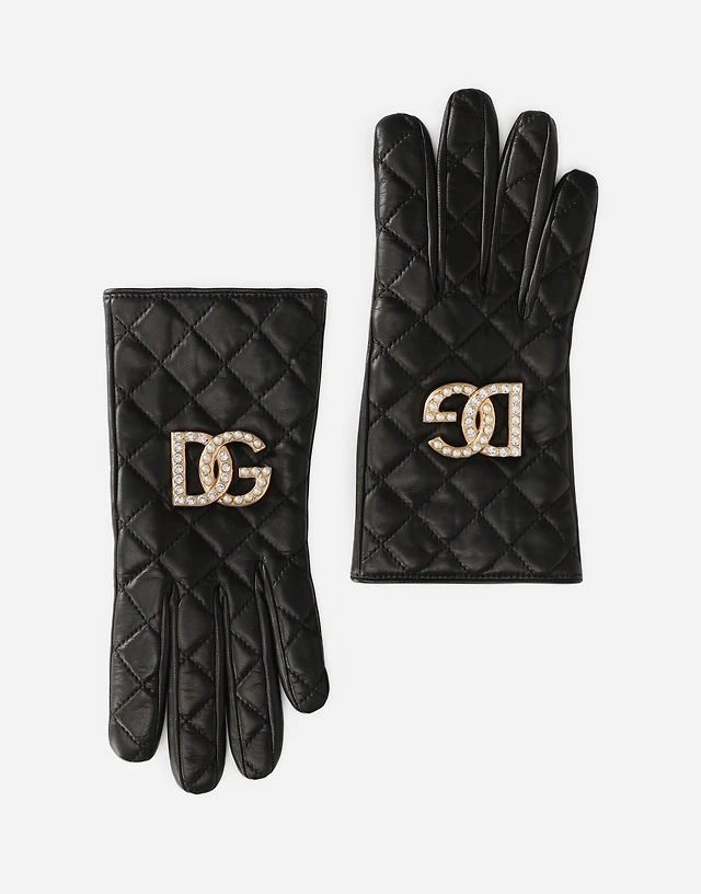Check Intarsia Leather Gloves in Storm blue - Women | Burberry® Official