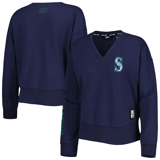 Women's DKNY Sport Navy Seattle Mariners Lily V-Neck Pullover Sweatshirt