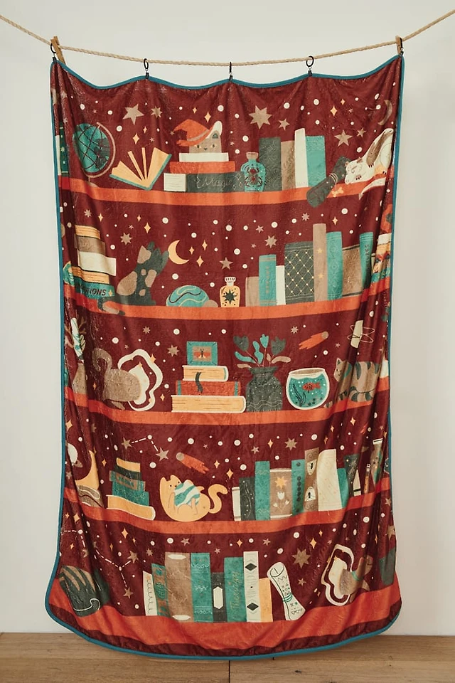 Whimsical Bookshelf Throw Blanket