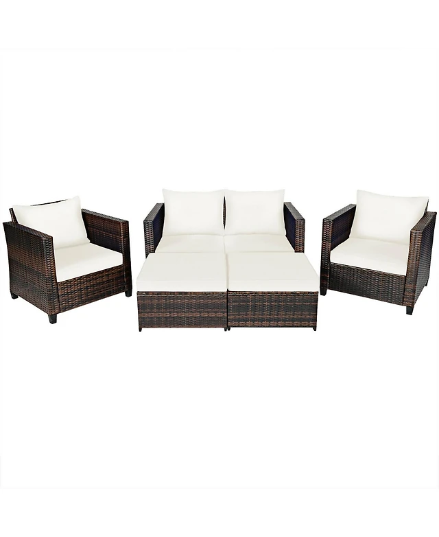 5 Pieces Patio Rattan Furniture Conversation Sets with Removable Cushions