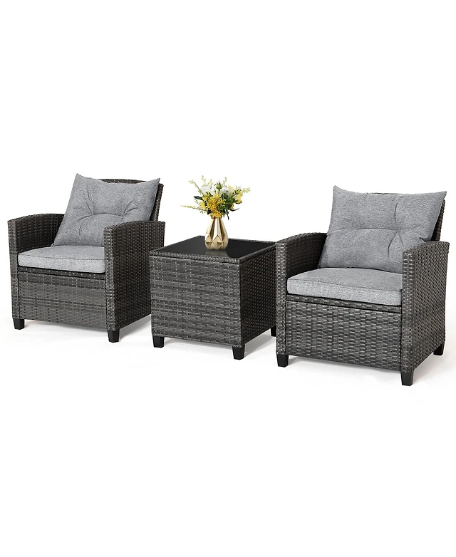 Gymax 3PCS Rattan Patio Conversation Set Outdoor Furniture Set w/ Table Cushion