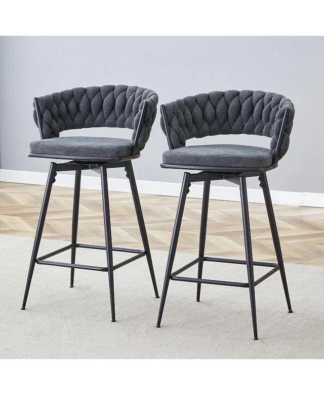 Gymax 25" Linen Upholstery Metal Frame Backrest, Footrest, 360° Swivel Seat, Comfortable Padding Set of 4 Bar Stools