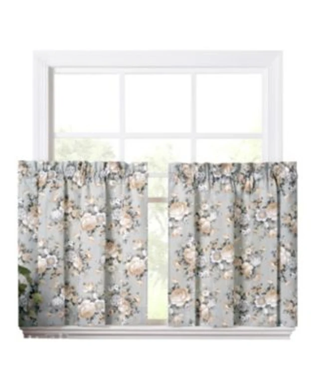 Ellis Bella Rose Stylish Medium Scale Printed Floral Pattern 1.5" Rod Pocket Tier 56"x24" Wedge