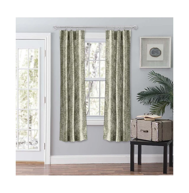 Ellis Curtain Davins 100 Percent High Quality 2-Piece Window Rod Pocket Panel Pairs With 2 Tie Backs - 90x63" - 90" x 63" Spa