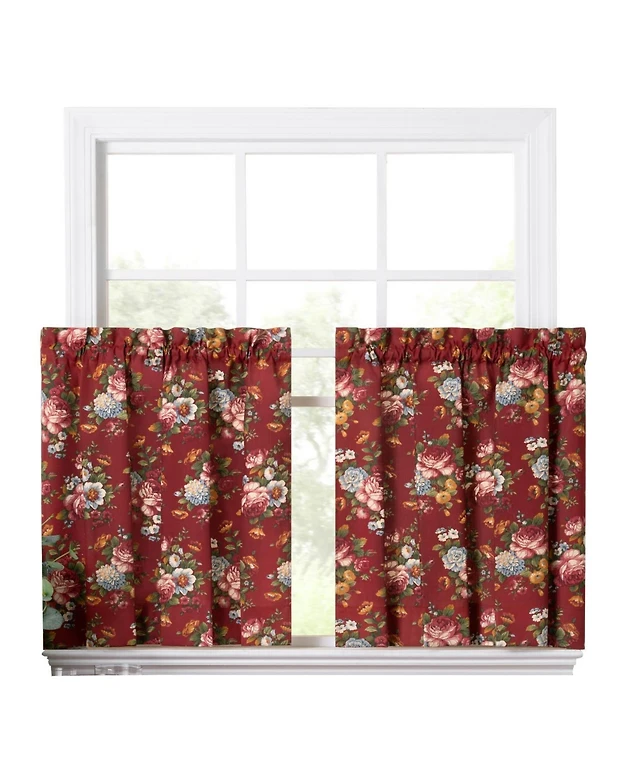 Balmoral Floral Print Semi Sheer Valance Curtain 48-Inch-by-15-Inch - Sage / Wine
