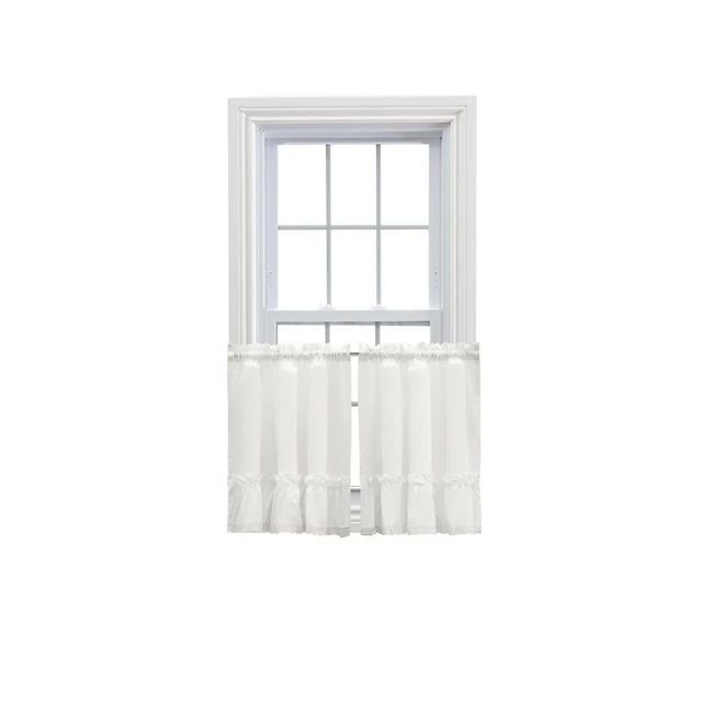 Thermavoile Rhapsody Lined Light Filtering Thermal Barrier Curtains Rod Pocket Curtain Tiers Pair Each 54" x 24" White