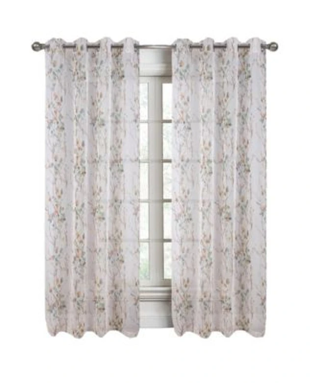 Commonwealth Primavera Style Panel Printed Floral Curtain, White