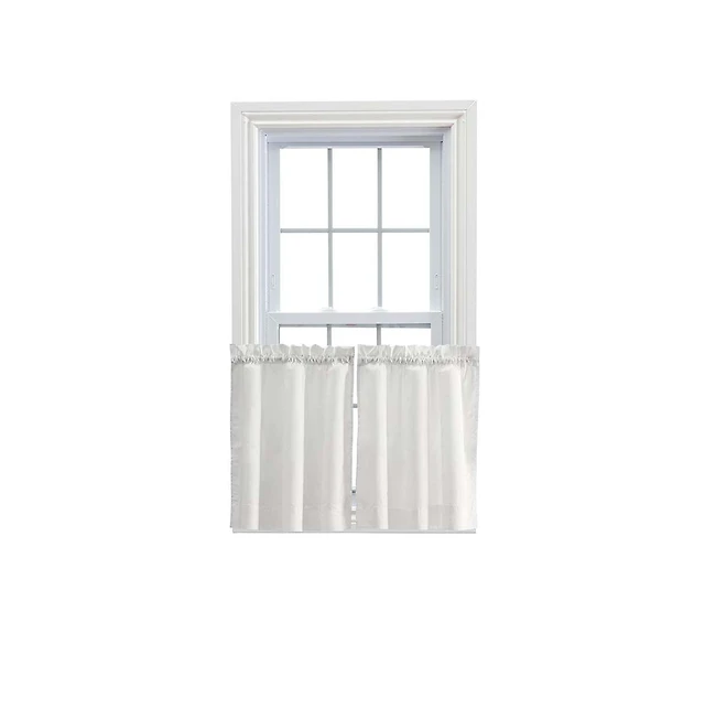 Ellis Curtain Cotton Voile 1.5" Rod Pocket Tailored Tier Pair for Windows 80" x 36" Natural