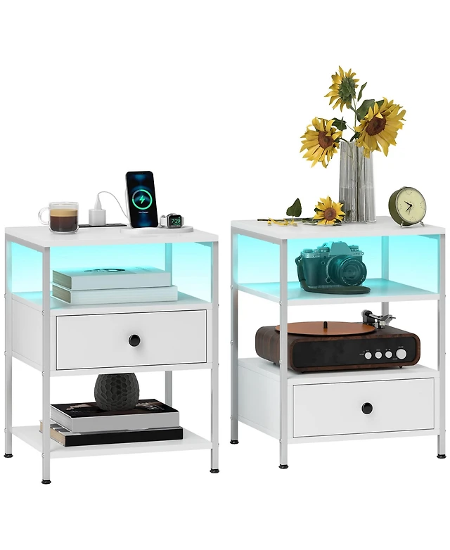 Homcom Set of 2 End Tables w/ Power Outlets & Lights for Living Room,