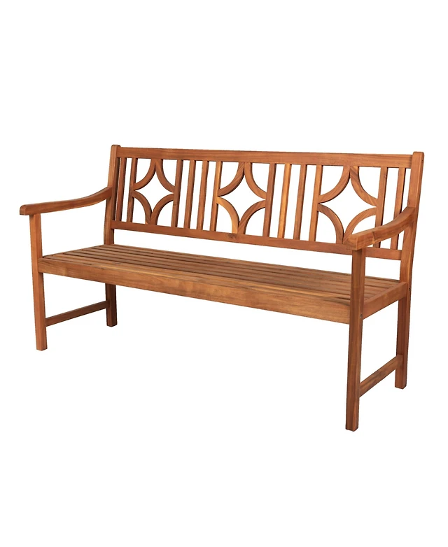 Outdoor Acacia Wood Bench with Backrest and Armrests