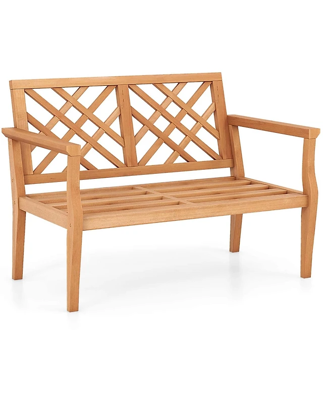 LuxenHome Natural Solid Wood 47.2-Inch Long Rectangle Sloping Seat Outdoor Bench