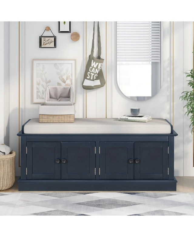 gaomon 47.7'' Mid-century Modern Upholstered Storage Bench with Solid Wood Legs