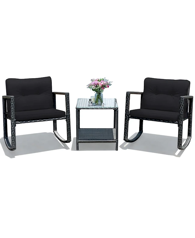 Outsunny Outdoor Rocking Chair, Hdpe Pe Wicker Padded Porch Rocker,