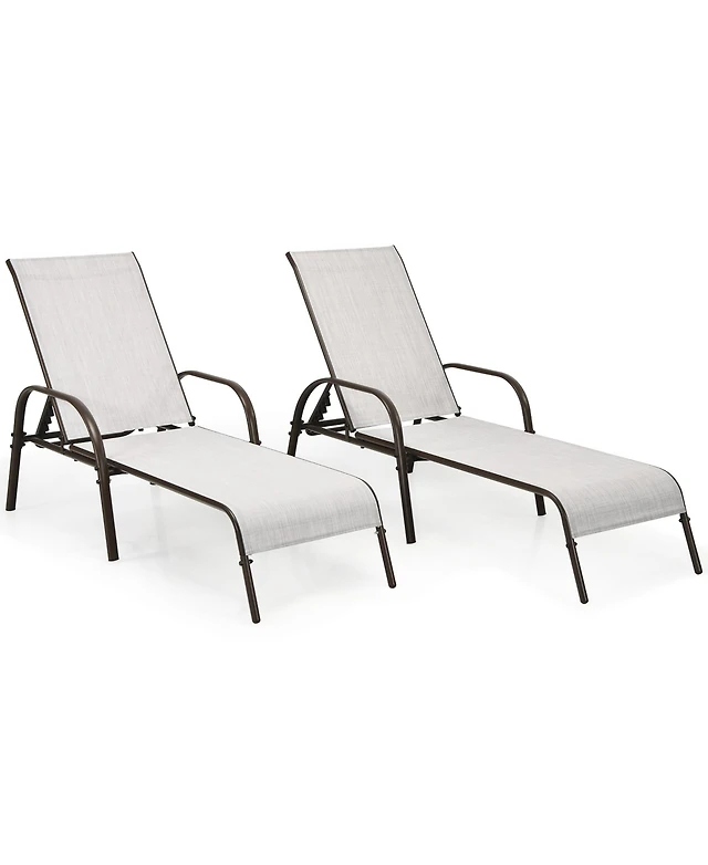 Costway 2PCS Patio Rattan Lounge Chair Chaise Recliner Back Adjustable Cushioned