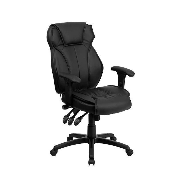Emma+Oliver High Back Leather Multifunction Executive Swivel Ergonomic Office Chair With Lumbar Support Knob With Arms