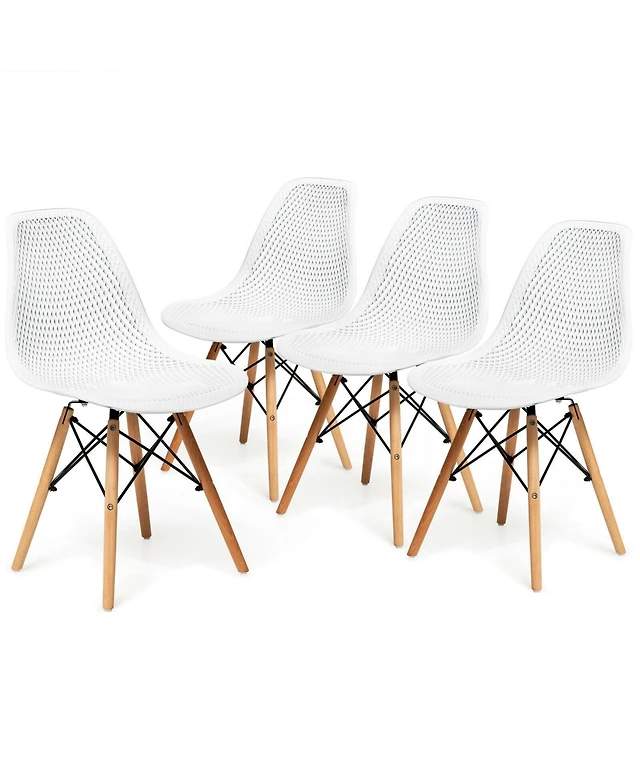 Sugift Set of 4 Modern Armless Dining Chairs Plastic Chairs with Wood Legs-White