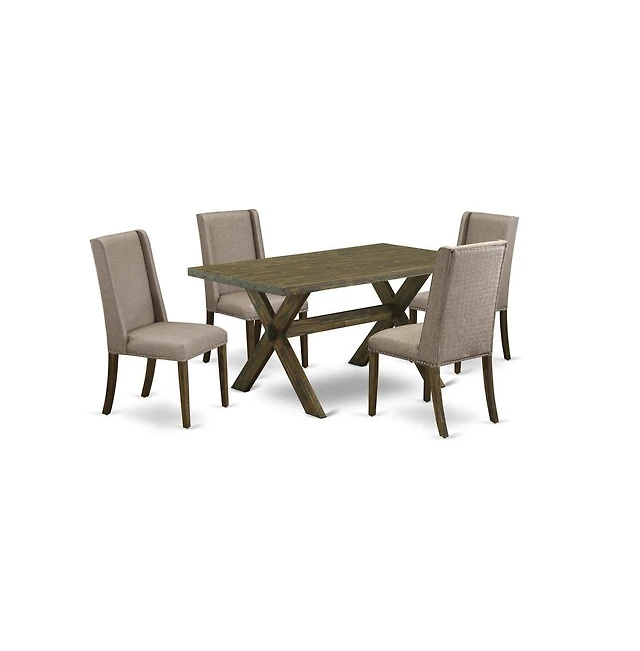 East West Furniture 5-Piece Modern Dinette Set an Excellent Cement Color Dining Room Table Top and 4 Stunning Linen Fabric Kitchen Chairs with Nail He