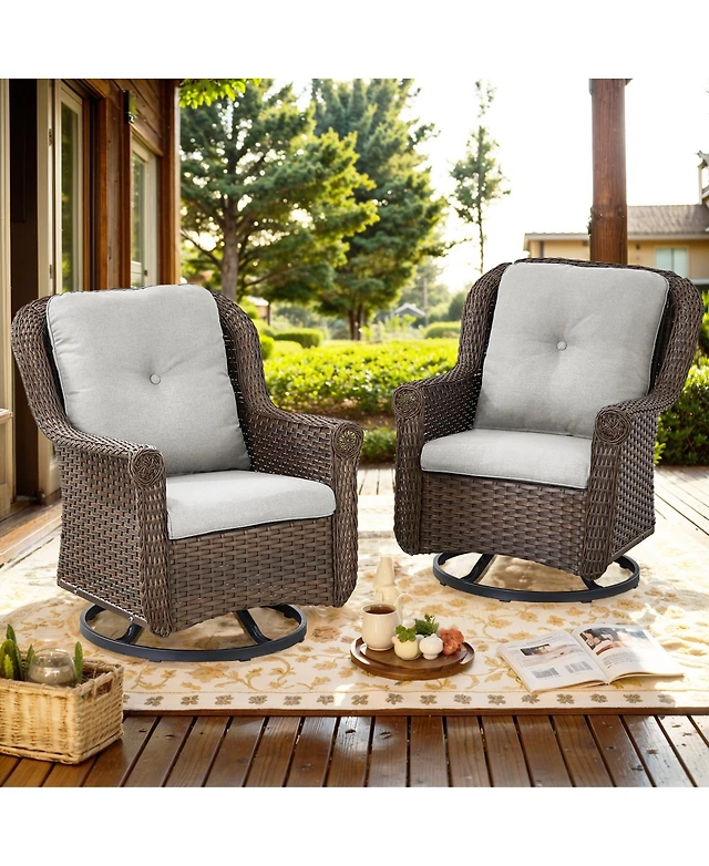 Gymojoy U-Frame 2-Piece Swivel Glider Wicker Outdoor Rocking Chair with Olefin Cushions