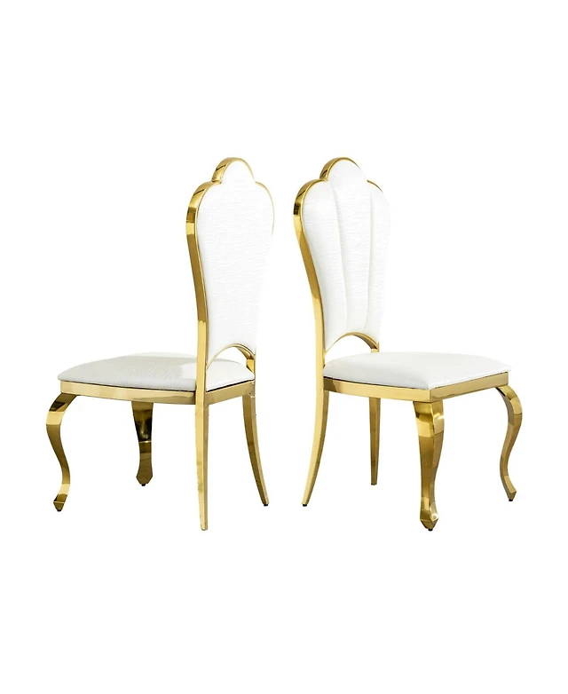 Streamdale Furniture White Pu Leather Chairs, Gold Legs (Set of 2)