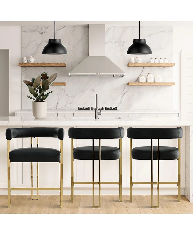 Streamdale Elegant Velvet Counter Bar Stools (Set of 2), Gold Leg