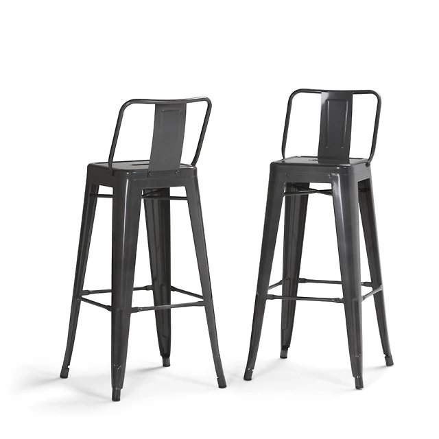 Ac Pacific Industrial Metal Barstools with Bucket Back and 4 Legs, Set of 2