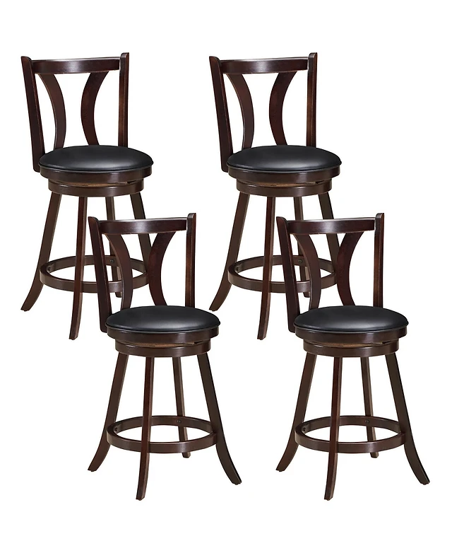 Gymax Set of Wooden Swivel Bar Stools Counter Height Kitchen Chairs w/ Back
