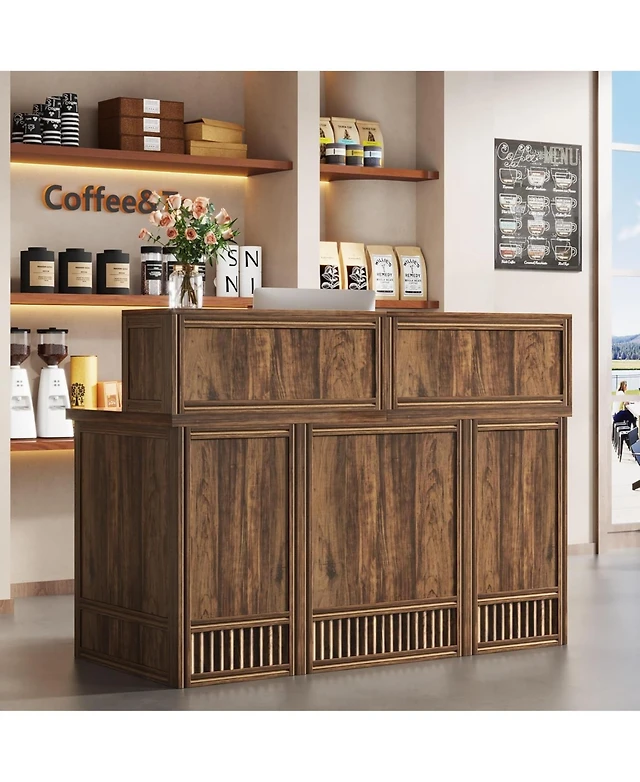 Famapy 55.1 in. L-Shaped Brown Wood Computer Desk Writing Office Executive W/Removable Tabletop, Shelves, 3-Drawers