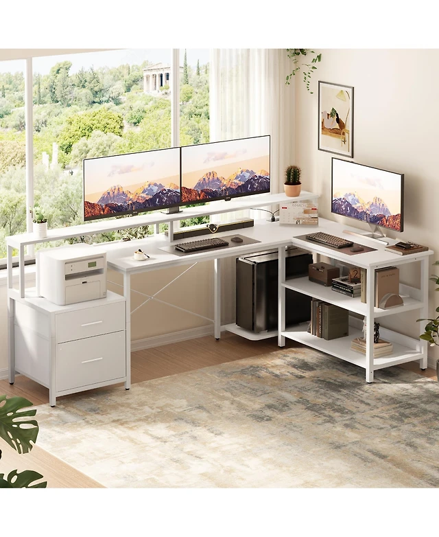 Techni Mobili Modern L-Shaped Desk w/ Side Shelves
